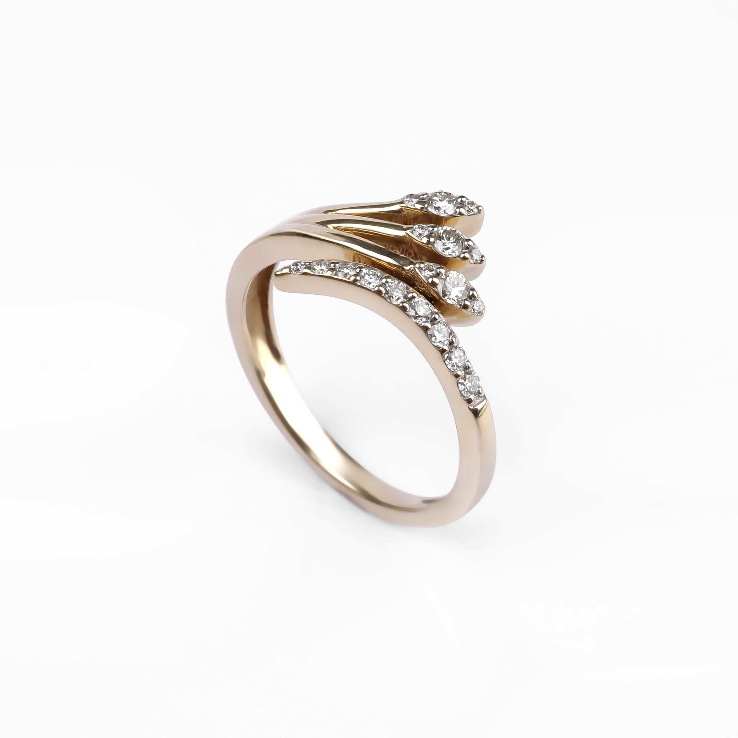 585 հարգի դեղին ոսկուց մատանի՝ 2.91 գ ընդհանուր քաշով։ Զարդարված է 18 հատ round ադամանդներով (JK/SI, ընդհանուր 0.2 կարատ), որոնք ստեղծում են նուրբ և ջերմ փայլ։ Էլեգանտ և նրբաճաշակ զարդ՝ գեղեցիկ նվեր նրա համար։