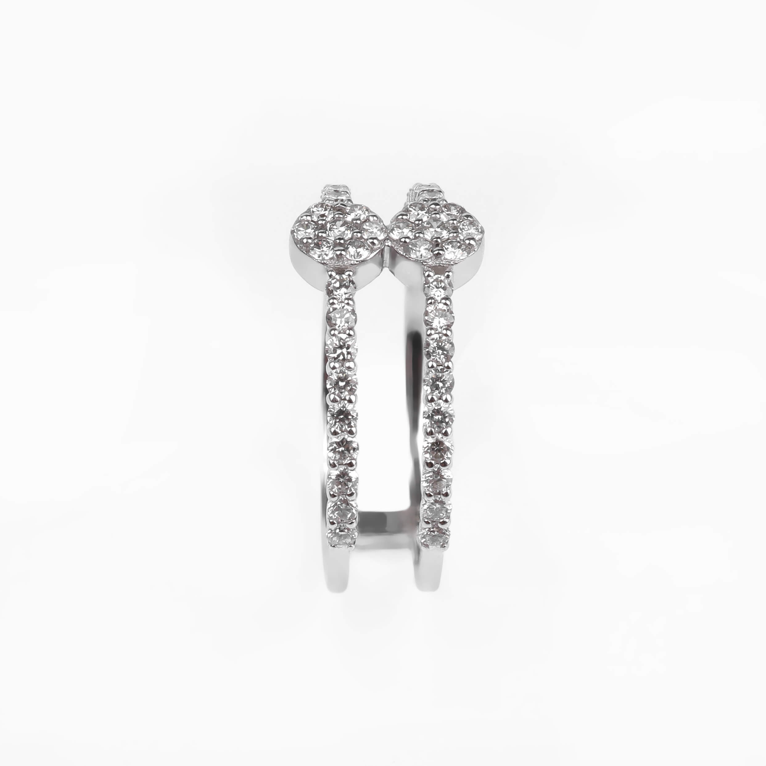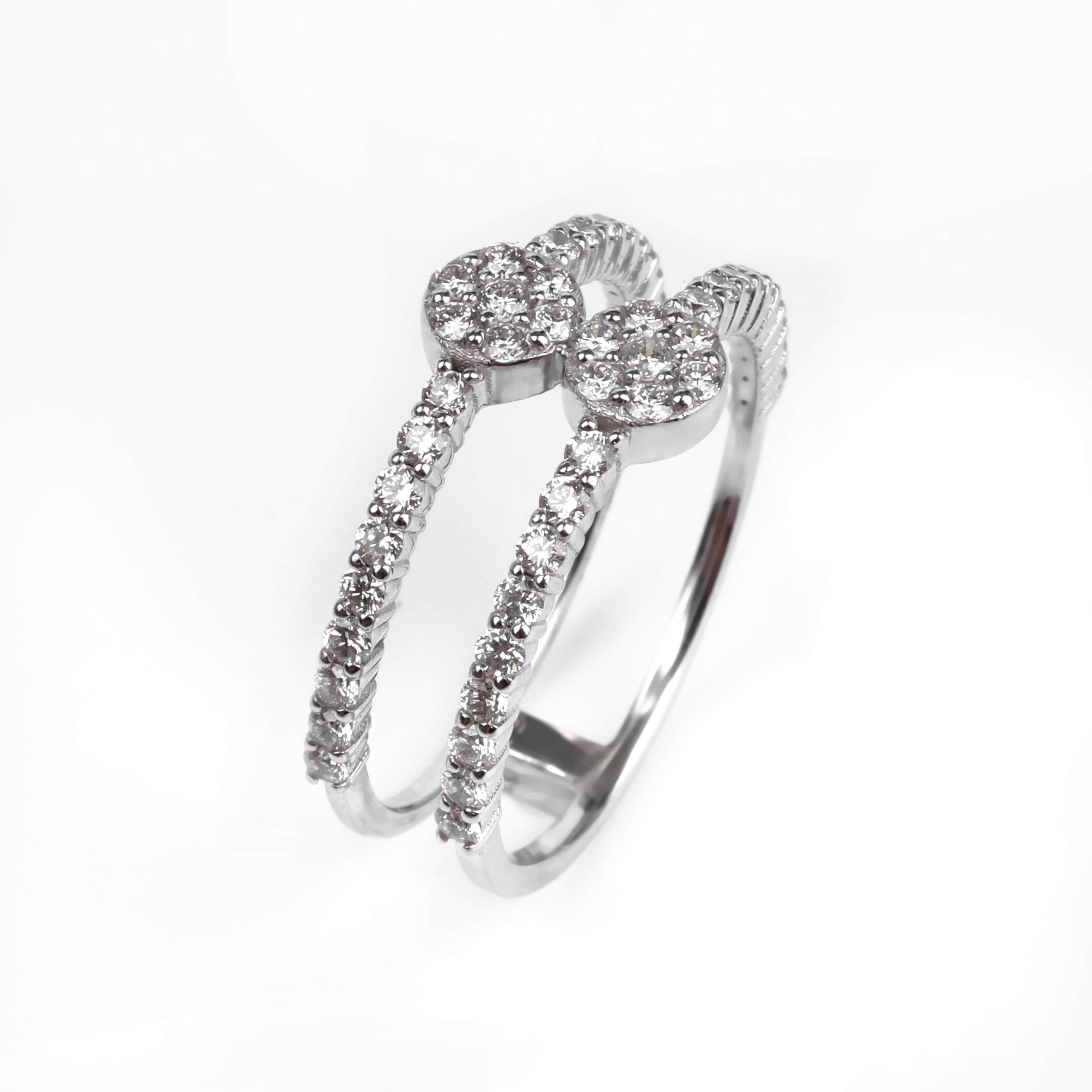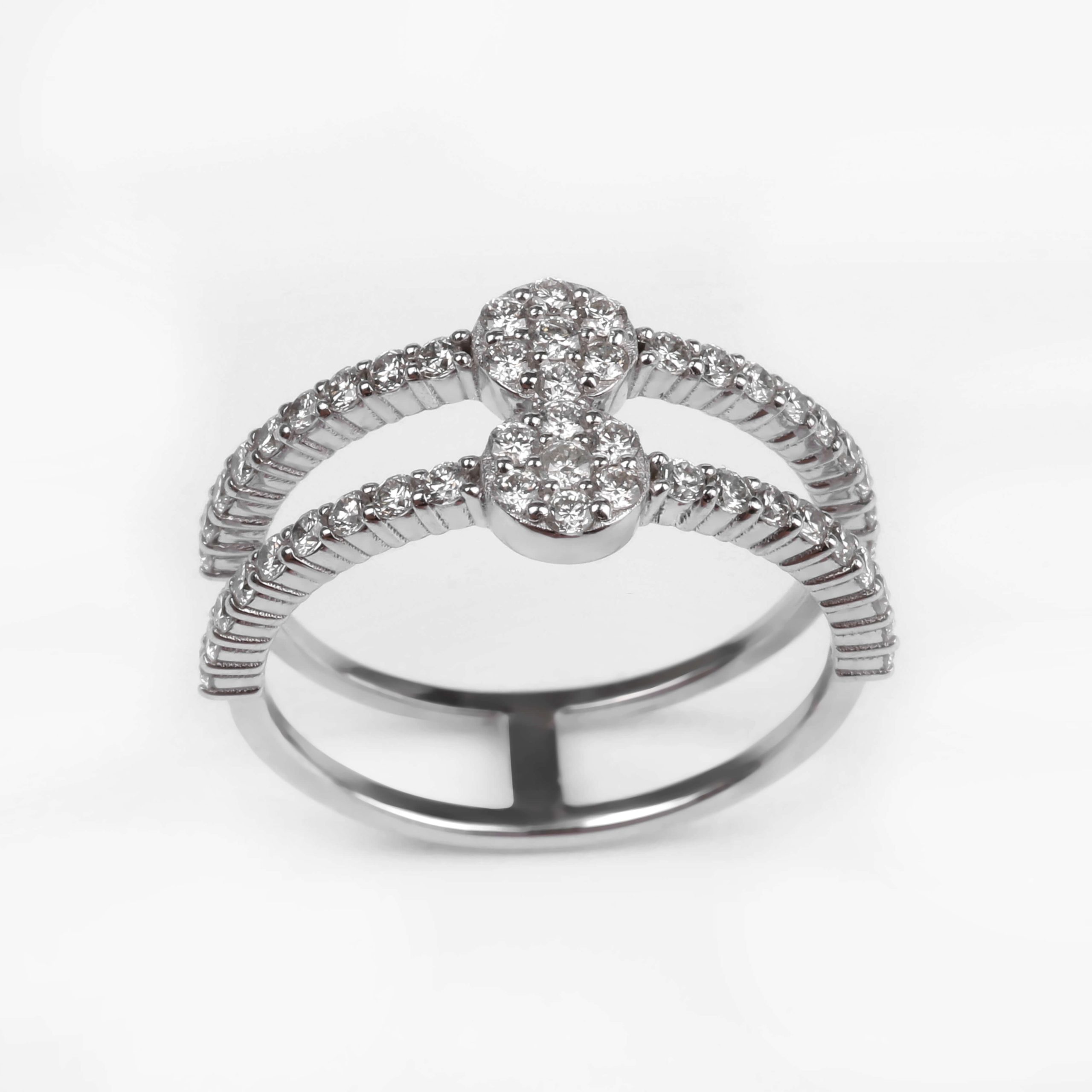 585 հարգի սպիտակ ոսկուց մատանի՝ 2.52 գ ընդհանուր քաշով։ Զարդարված է 50 հատ round ադամանդներով (HI/SI, ընդհանուր 0.62 կարատ), որոնք ստեղծում են պայծառ և նրբագեղ փայլ։ Էլեգանտ և ժամանակակից զարդ՝ գեղեցիկ նվեր նրա համար։