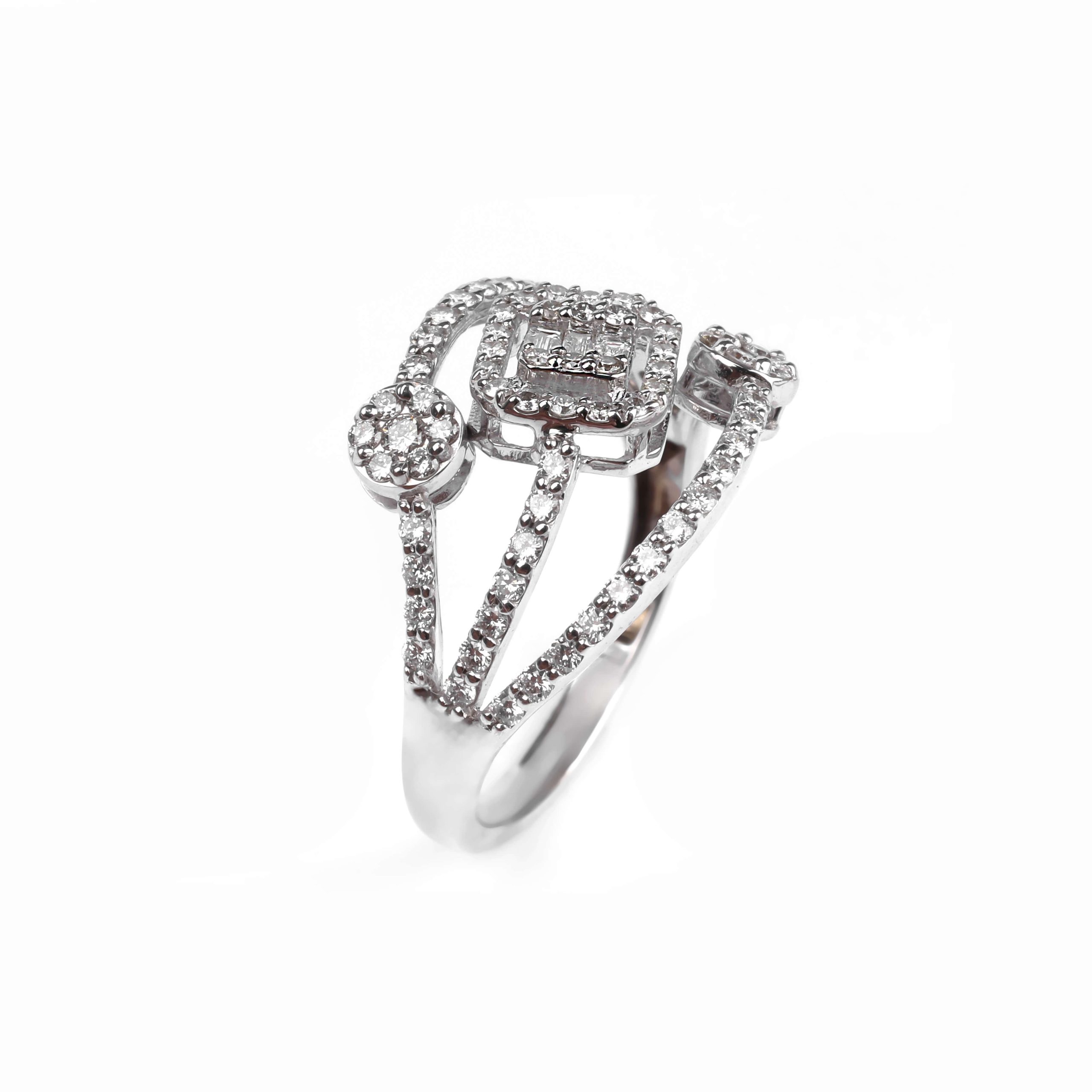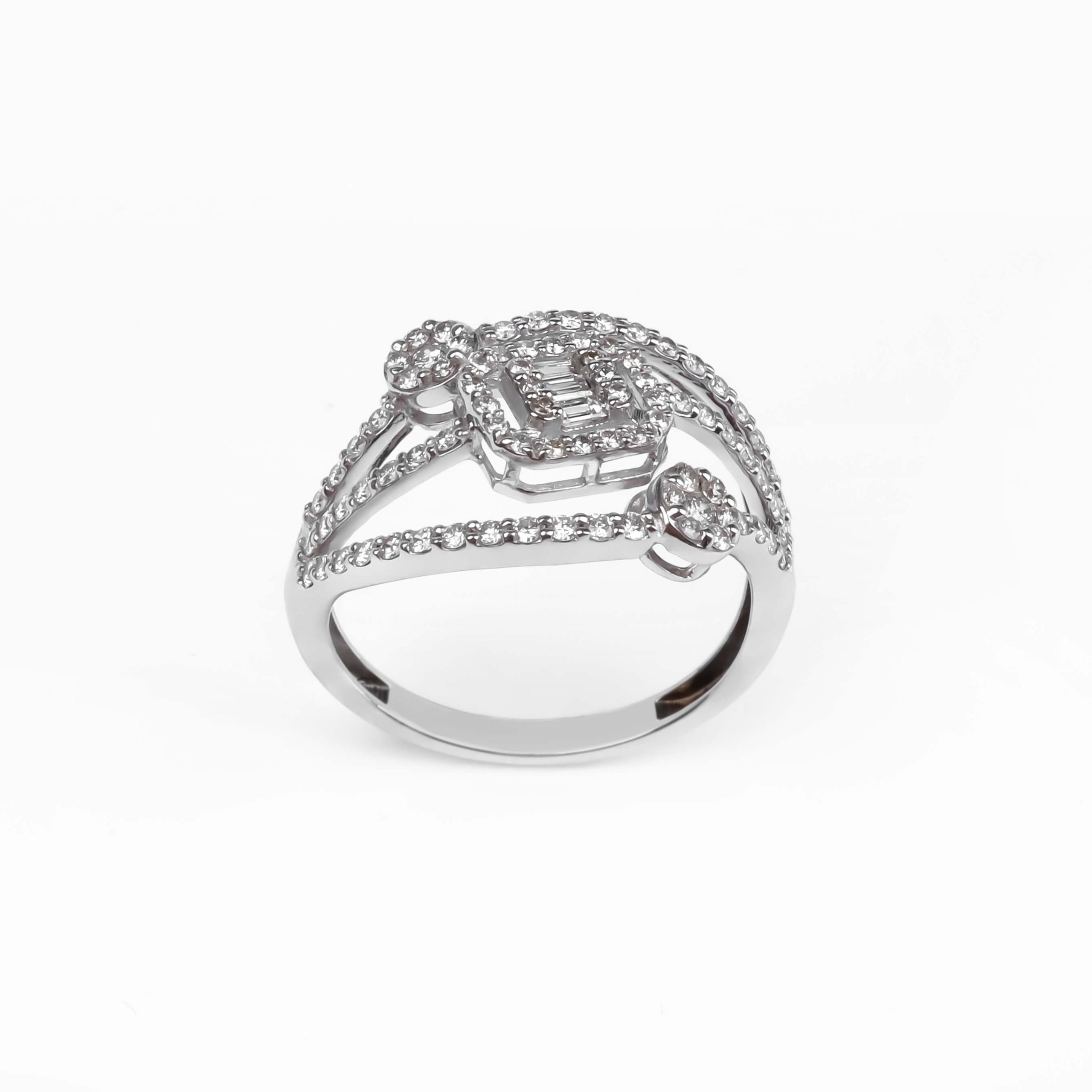 750 հարգի սպիտակ ոսկուց մատանի՝ 3.29 գ ընդհանուր քաշով։ Զարդարված է 84 հատ round ադամանդներով (D–G/SI, ընդհանուր 0.895 կարատ) և 3 հատ baguette ադամանդներով (FG/VS, 0.04 կարատ), որոնք ստեղծում են պայծառ և նրբագեղ փայլ։ Շքեղ և էլեգանտ զարդ՝ նախատեսված առանձնահատուկ պահերի համար։