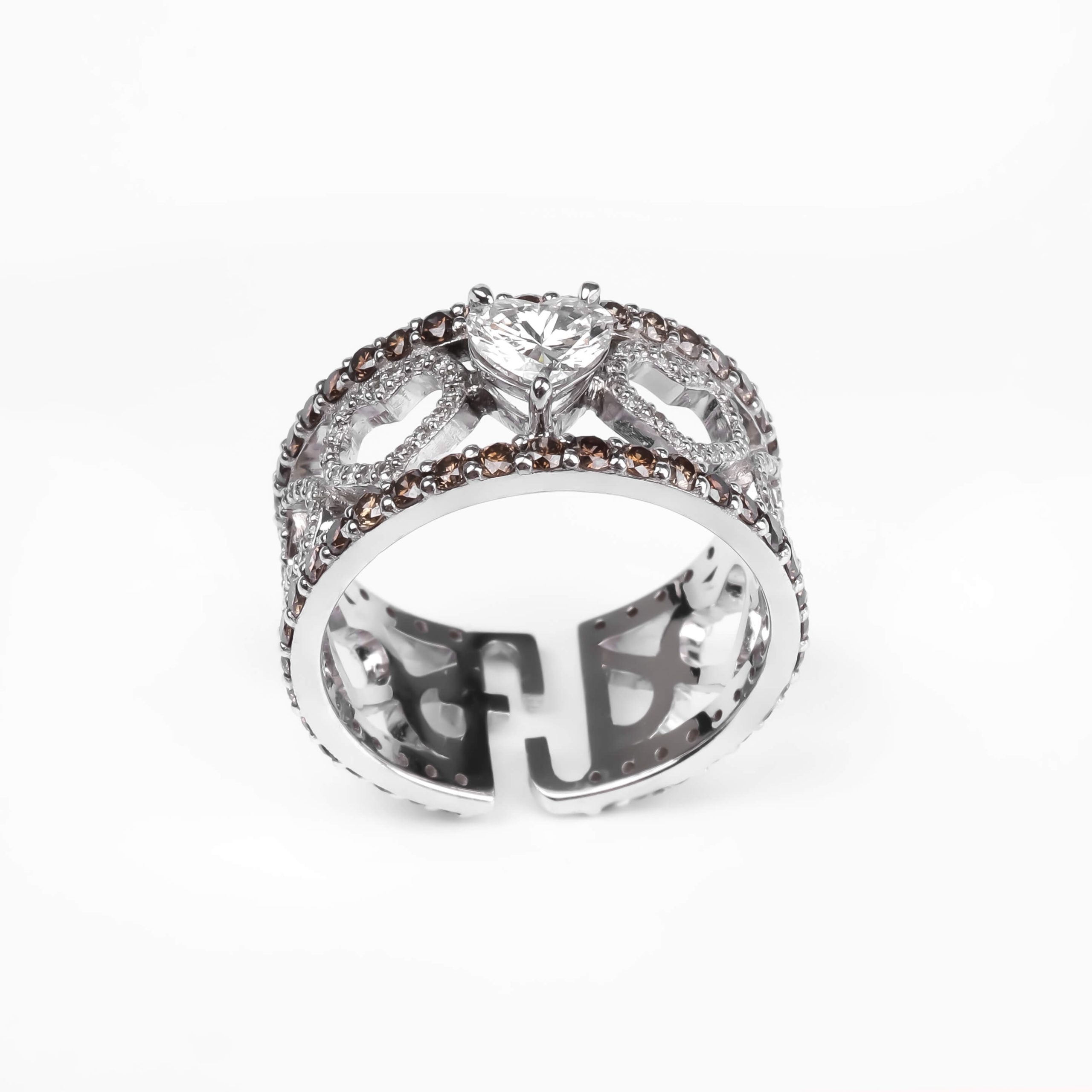 585 հարգի սպիտակ ոսկուց մատանի՝ 5.16 գ ընդհանուր քաշով։ Զարդարված է 128 հատ round ադամանդներով (HI/VS, 0.335 կարատ), 67 հատ fancy ադամանդներով (1.21 կարատ) և կենտրոնական սրտաձև ադամանդով (HI/VS1, 0.44 կարատ), որոնք ստեղծում են վառ և ռոմանտիկ փայլ։ Տպավորիչ և նրբագեղ զարդ՝ գեղեցիկ նվեր նրա համար։