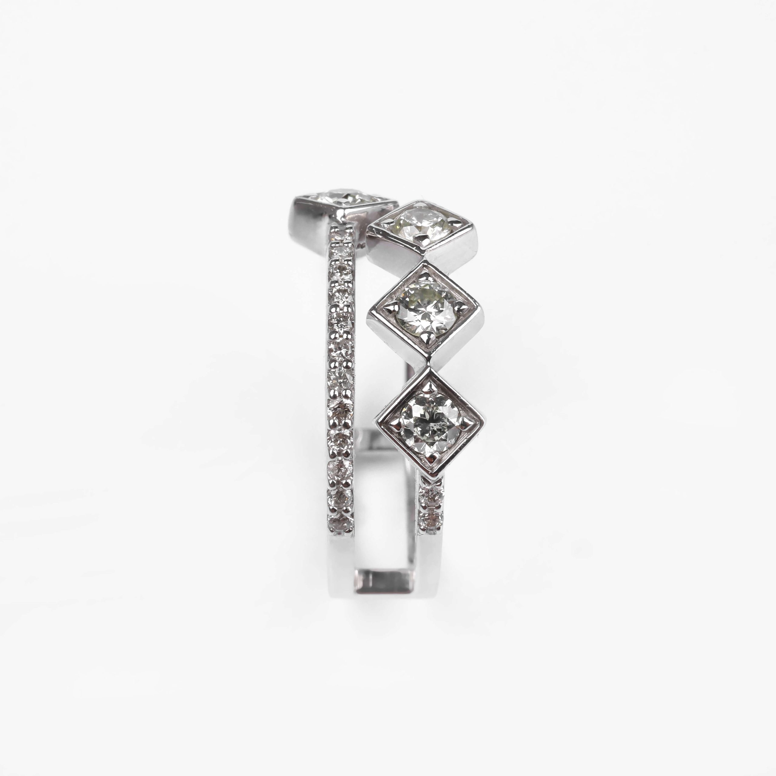 585 հարգի սպիտակ ոսկուց մատանի՝ 4.02 գ ընդհանուր քաշով։ Զարդարված է round ադամանդներով՝ 28 հատ (HI/SI, 0.205 կարատ) և 5 հատ (JK/I, 0.462 կարատ), որոնք ստեղծում են նուրբ և պայծառ փայլ։ Էլեգանտ և շքեղ զարդ՝ գեղեցիկ նվեր նրա համար։