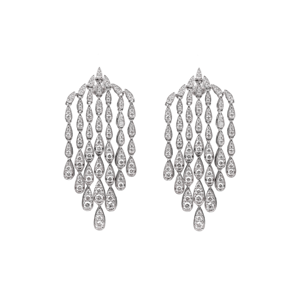 Ադամանդների մեծ քանակը ականջօղերին հաղորդում է շքեղություն և ընդգծում դրանց նրբագեղ դիզայնը։