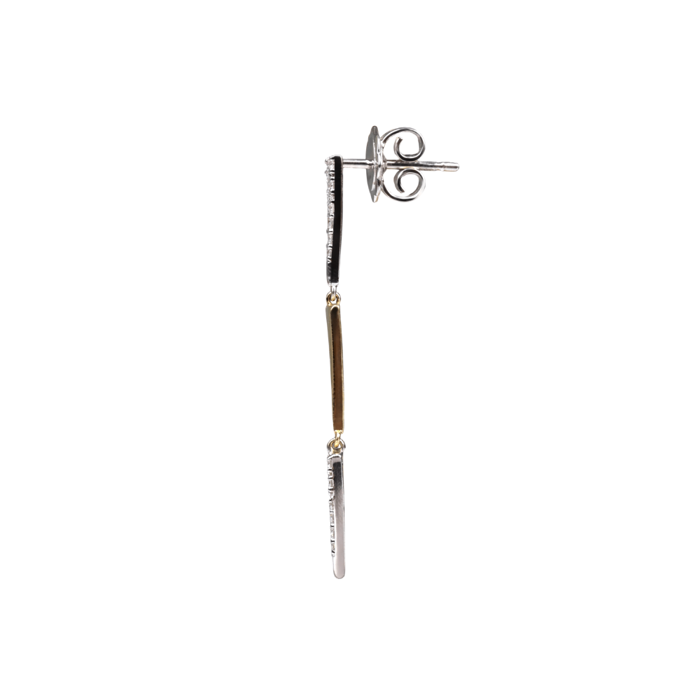 Նրբագեղ ականջօղեր՝ պատրաստված 750 հարգի սպիտակ և դեղին ոսկու համադրությամբ։