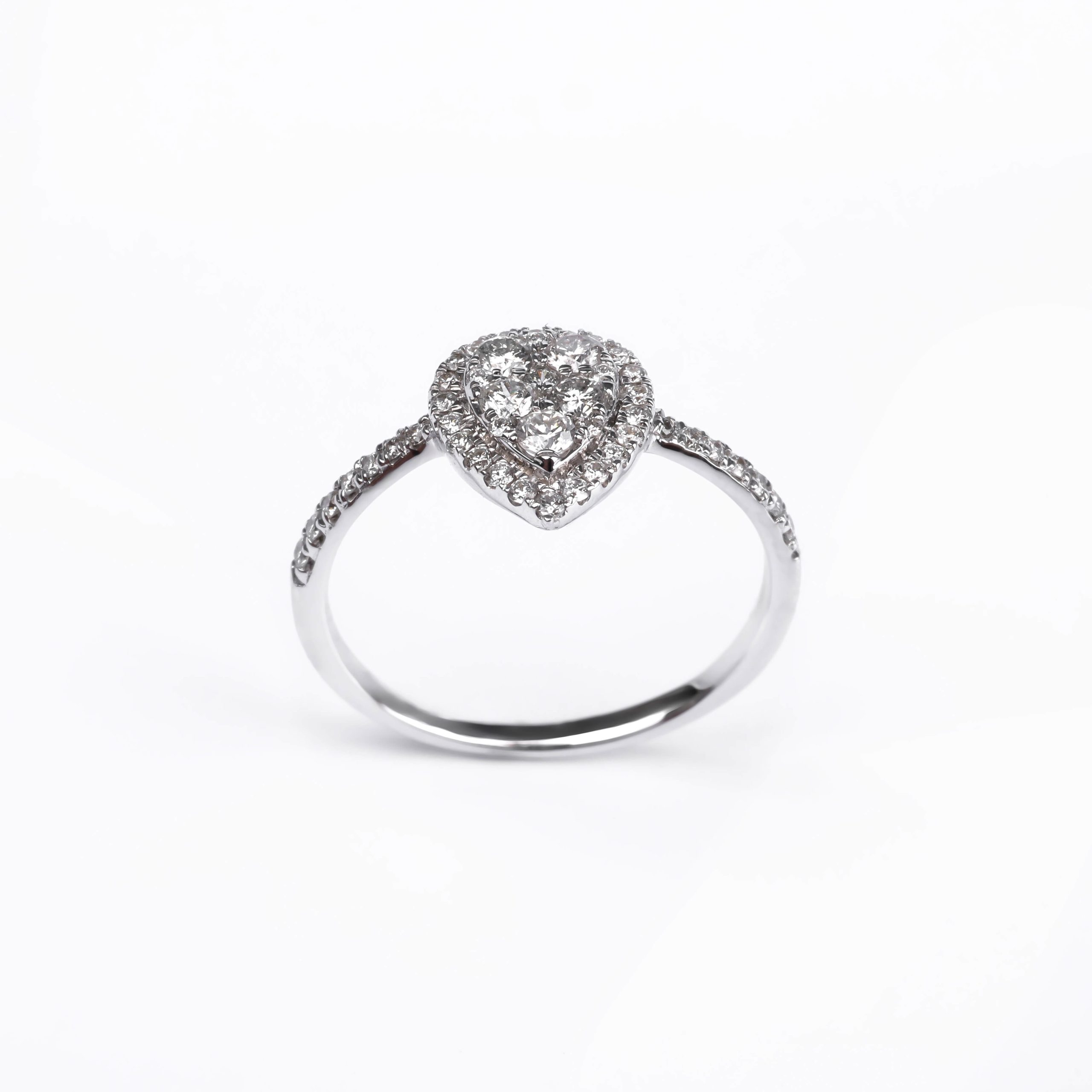 750 հարգի սպիտակ ոսկուց մատանի՝ 2.13 գ ընդհանուր քաշով։ Զարդարված է 47 հատ round ադամանդներով (ընդհանուր 0.45 կարատ), որոնք ստեղծում են նուրբ և պայծառ փայլ։ Էլեգանտ և ռոմանտիկ ընտրություն սիրո խոստումը խորհրդանշելու համար։