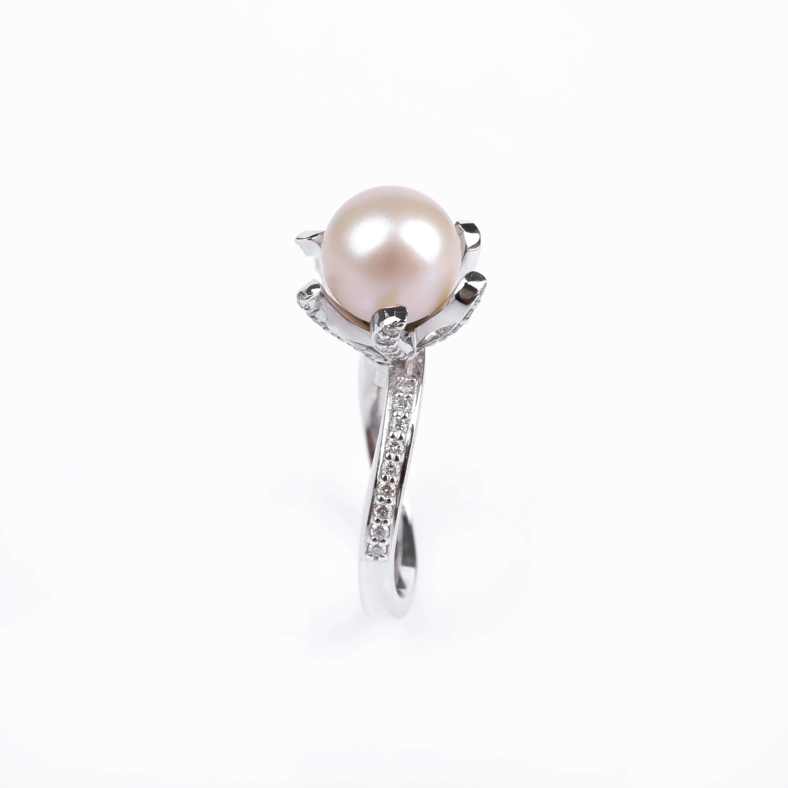 A 585 white gold ring with a total weight of 5.33 g. Set with 54 round diamonds (HI/SI, total 0.33 ct) and a 4.21 ct natural pearl, adding timeless elegance and soft radiance. A refined piece, perfect as a meaningful gift or part of a sophisticated set.