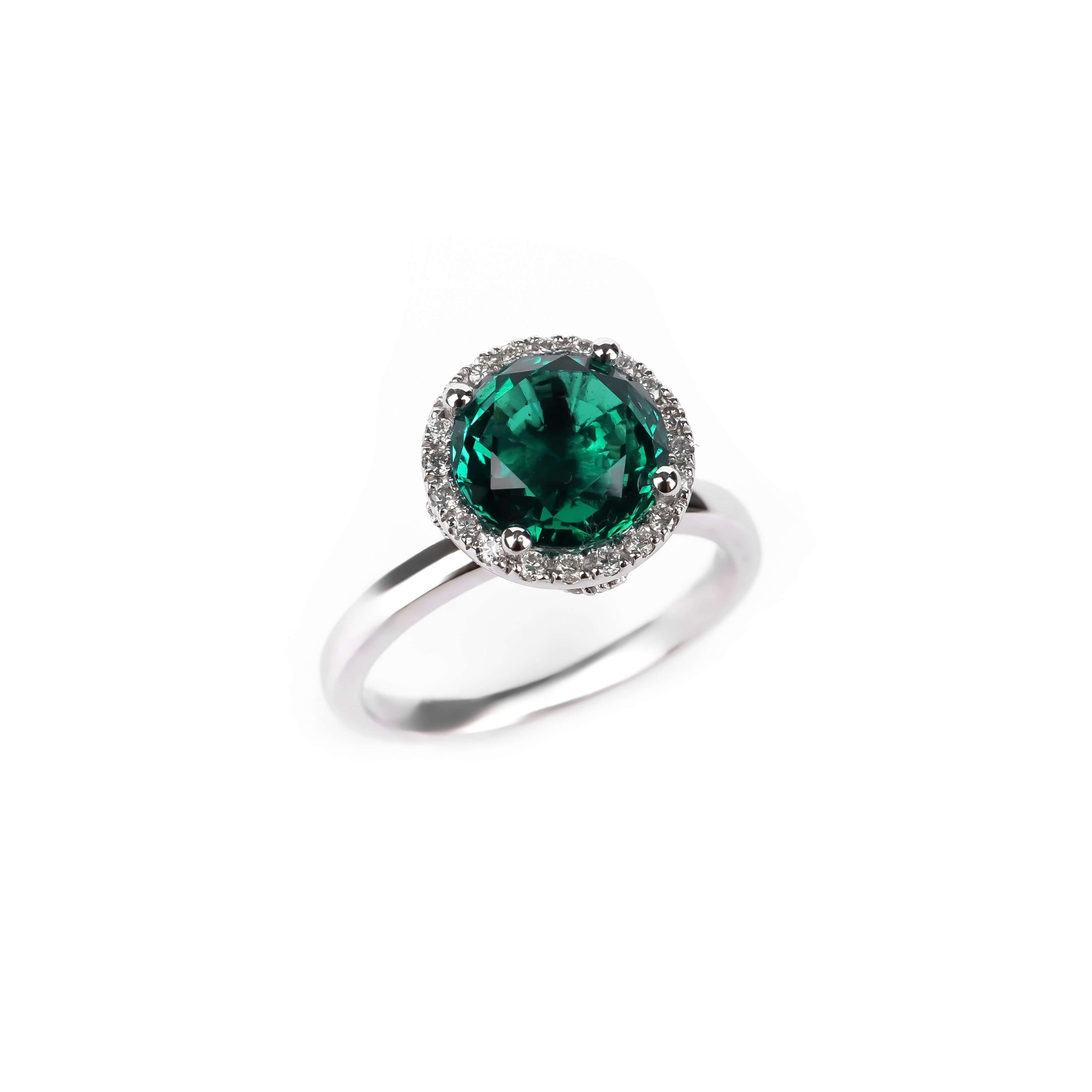 The central emerald gemstone adds a vibrant green hue and enhances the ring’s luxurious elegance.