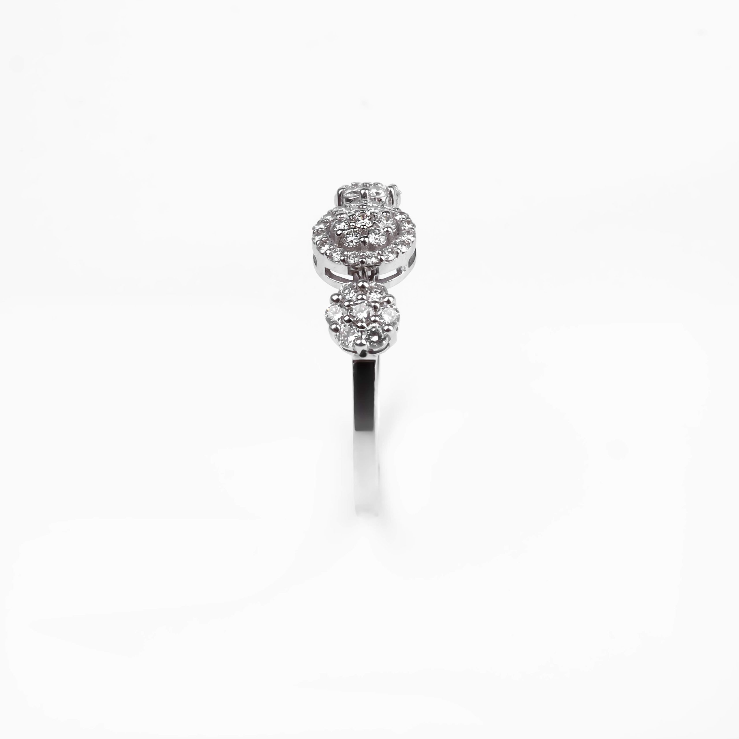 A High Jewelry ring crafted in 750 white gold, with a total weight of 2.68 g. Set with 37 round diamonds (D–G/VS, total 0.34 ct), creating delicate and radiant brilliance. An elegant and luxurious piece designed for truly special moments.