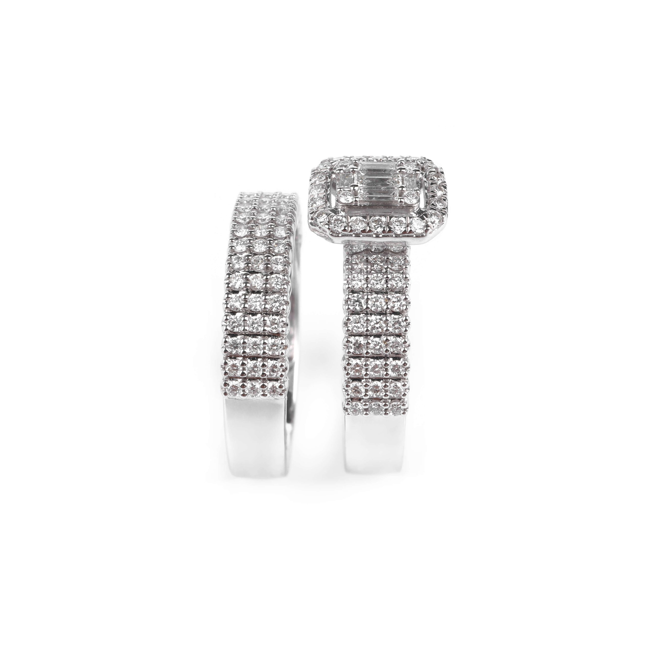 A High Jewelry ring crafted in 750 white gold, with a total weight of 8.17 g. Set with 137 round diamonds (0.84 ct) and 5 baguette diamonds (0.09 ct), creating rich, multi-layered brilliance. A striking and luxurious choice for an engagement, wedding, or a timeless declaration of love.